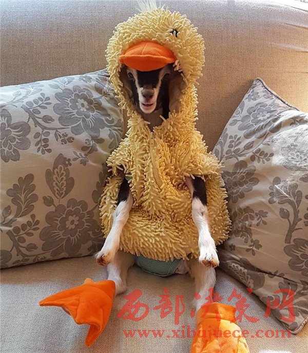 小鴨子服不僅為小羊的可愛加了分,還緩解了Polly的焦慮癥。現(xiàn)在只要Polly的焦慮癥再發(fā)作,琳恩就會給它穿上小鴨子服,Polly就會馬上睡著。