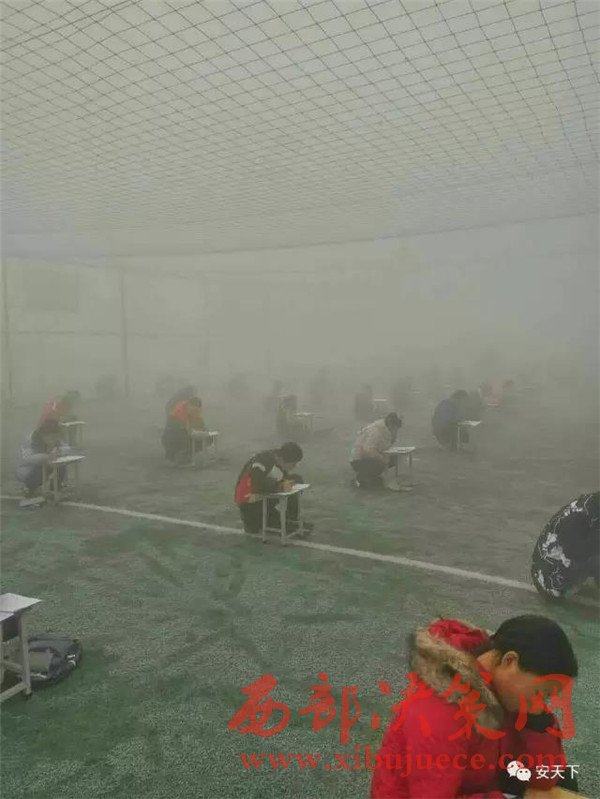 連日來(lái),安陽(yáng)地區(qū)空氣嚴(yán)重污染,空氣污染指數(shù)連續(xù)爆表,林州市教體局下發(fā)了全市中各中小學(xué)、幼兒園停課通知。然而,昨日上午,大河報(bào)記者接到林州市臨淇鎮(zhèn)一中學(xué)生家長(zhǎng)的投訴電話稱,在這種霧霾天氣,該校不僅沒(méi)有給孩子放假,還組織幾百名學(xué)生在操場(chǎng)上進(jìn)行考試。