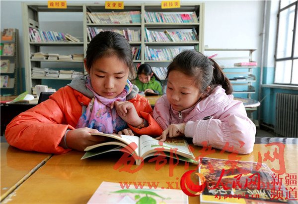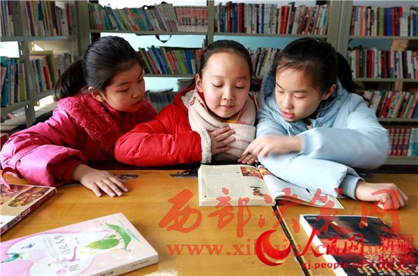 2月4日,新疆生產(chǎn)建設(shè)兵團(tuán)第五師八十一團(tuán)城鎮(zhèn)社區(qū)的農(nóng)家書(shū)屋里,學(xué)生們?cè)陂喿x自己喜愛(ài)的書(shū)籍。