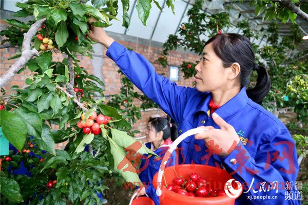 原標(biāo)題:新疆一三四團(tuán)大棚櫻桃惹人眼引游客前來嘗鮮(組圖)