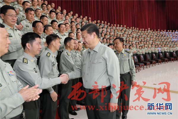 中共中央總書記、國家主席、中央軍委主席習近平21日視察南部戰(zhàn)區(qū)陸軍機關(guān),強調(diào)要以黨在新形勢下的強軍目標為引領,貫徹新形勢下軍事戰(zhàn)略方針,堅持穩(wěn)中求進工作總基調(diào),堅持政治建軍、改革強軍、依法治軍,求真務實,開拓創(chuàng)新,真抓實干,扎扎實實落實好軍委部署的各項工作任務,努力開創(chuàng)部隊工作新局面,以優(yōu)異成績迎接黨的十九大召開。