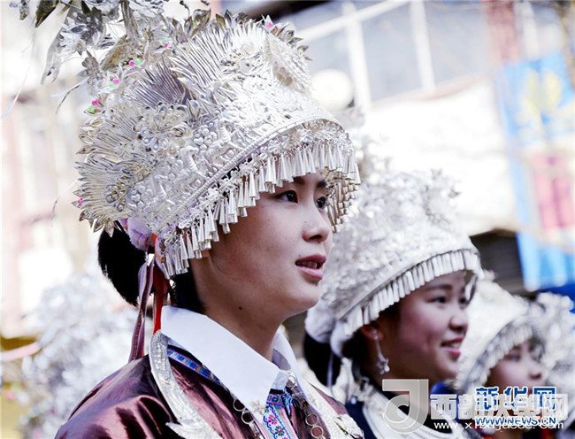 12月18日,身著盛裝的侗族同胞參加巡游。當(dāng)日,2017中國侗年暨第八屆黎平·中國侗文化旅游節(jié)“非遺”文化巡游在貴州省黔東南苗族侗族自治州黎平縣舉行,當(dāng)?shù)囟弊逋麣g聚一堂,喜迎侗年到來。(張暉 攝)