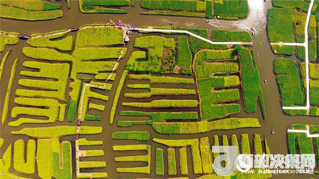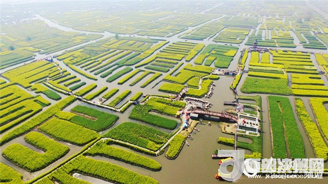 泰州興化的油菜花,以千島樣式形成的垛田景觀享譽全國。傳說垛田是當(dāng)年泰州知州岳飛大戰(zhàn)金兵擺設(shè)的八卦陣,每當(dāng)清明前后,油菜花開,藍天、碧水、“金島”織就了“河有萬灣多碧水,田無一垛不黃花”的奇麗畫卷,吸引了眾多海內(nèi)外游客前來觀光。(耿志超)