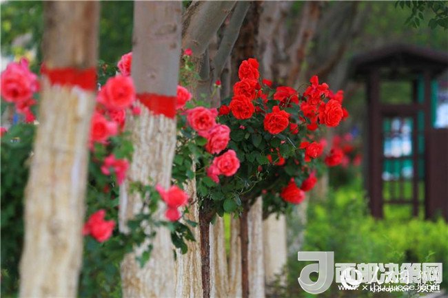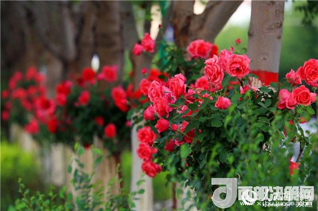 托克遜縣是新疆春天到來最早的地方,而且這里的夏天也來的早,還沒有進入五月,這里的氣溫也已經(jīng)過了30攝氏度。獨特的氣候條件造就了這里獨特的美景,在該縣托克遜鎮(zhèn)友好路上,去年新栽植的上千株玫瑰花正在絢麗綻放,每株上面至少有十幾朵玫瑰花同時盛開,有紅色、白色、黃色、粉色等等,可謂是五彩繽紛,撩人心弦。