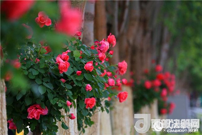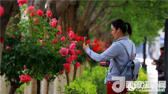 漫步在友好路兩側的人行道上,青青垂柳遮住了太陽的熾熱,垂柳上的許愿帶隨風飄蕩,五顏六色的玫瑰花光彩奪目,空氣中都是夏天的味道。這里的人們都已經(jīng)換上的夏天的衣服,小孩子在老人和父母的陪伴下在這里納涼賞花,過往的路人時不時拿出手機和玫瑰花拍照留影。(李靖海、吳雙、胡國凱)