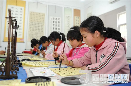 陜西省漢中市勉縣溫泉鎮(zhèn)中心小學,是勉縣在汶川地震受災后重建的一所鄉(xiāng)村小學,目前在校學生470人。近年來,溫泉鎮(zhèn)中心小學不斷改善辦學條件和辦學質(zhì)量,在校內(nèi)建成音樂教室、書法教室、圖書室等多樣化教學場所,并長期開展舞蹈課、書法課、民俗表演課等素質(zhì)教育課程,使學生們能夠享受到優(yōu)質(zhì)的教育服務。新華社發(fā)(張博文 攝)