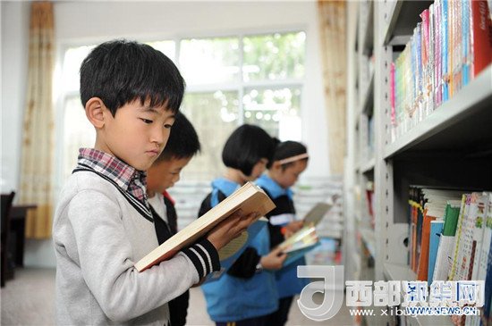 4月25日,陜西省勉縣溫泉鎮(zhèn)中心小學學生在圖書室內(nèi)閱讀書籍。