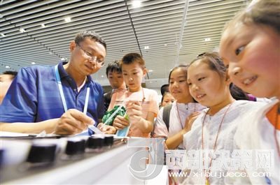 圖為2018年全國科技活動周暨北京科技周活動主場,國家納米科學(xué)中心任紅軒教授為來自張家口的學(xué)生展示“納米夢工坊”便攜納米科普教具,讓學(xué)生感受納米科技魅力。洪星 攝
