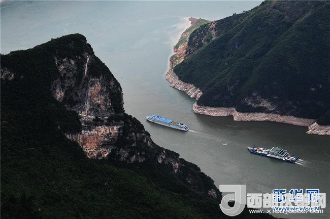 5月23日,船只穿梭在瞿塘峽(無(wú)人機(jī)拍攝)。 新華社記者 王全超攝