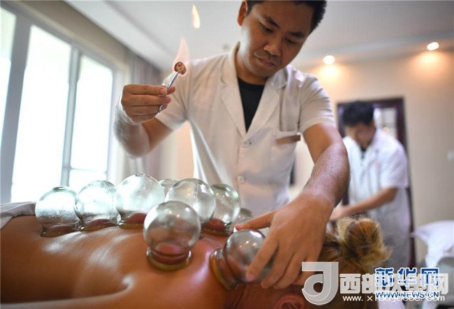 在海南三亞國際友好中醫(yī)療養(yǎng)院,醫(yī)師為來自俄羅斯的游客進行中醫(yī)理療(6月2日攝)。