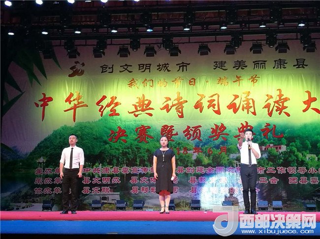 西部決策網(wǎng)——西部大開發(fā)訊(帥華鋒 通訊員 張存益 杜寧生)為紀(jì)念愛國(guó)詩(shī)人屈原,進(jìn)一步弘揚(yáng)傳承中華民族優(yōu)秀傳統(tǒng)文化,豐富全縣人民群眾的文化生活,助推全國(guó)文明城市創(chuàng)建,6月12日,甘肅康縣舉行以“創(chuàng)建文明城市,共建美麗康縣”為主題的“我們的節(jié)日·端午節(jié)”中華經(jīng)典詩(shī)詞誦讀大賽決賽暨頒獎(jiǎng)典禮??悼h四大班子領(lǐng)導(dǎo)和1000余名觀眾一同觀看了決賽盛況和精彩對(duì)決。