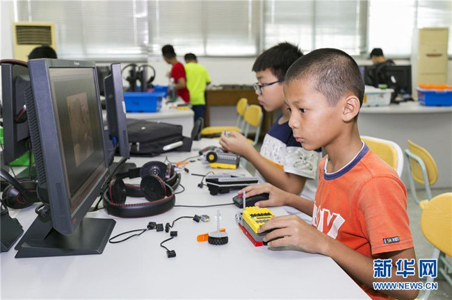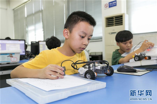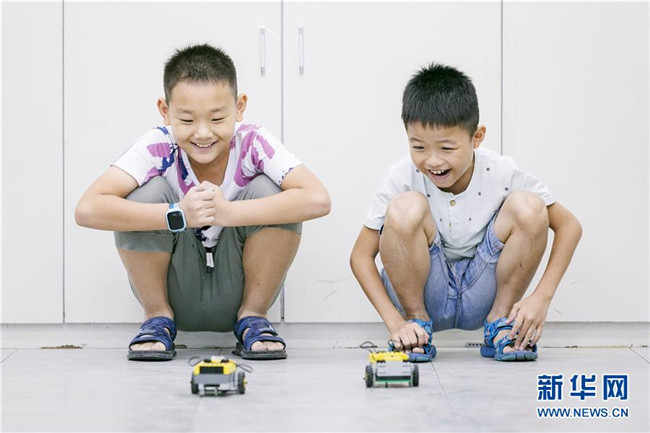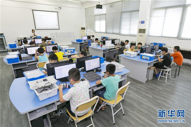 暑假期間,福建省晉江市舉辦青少年科普公益課堂,增強青少年的創(chuàng)新意識,豐富學生們的假期生活。 新華社發(fā)(賴進財 攝)