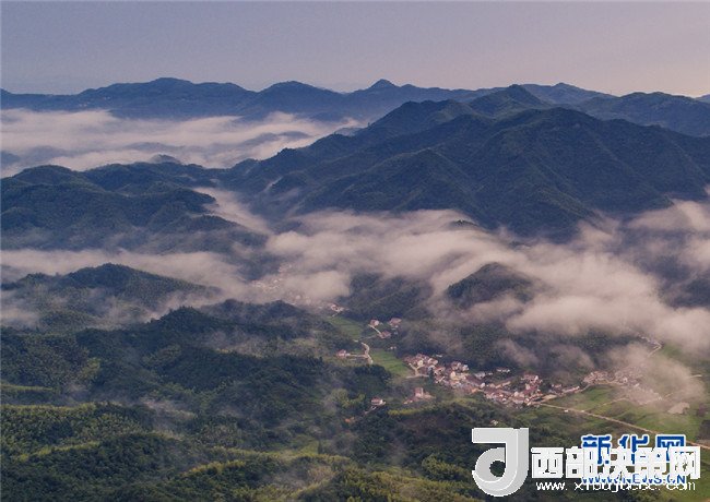 當(dāng)日,地處大別山腹地的安徽霍山縣迎來入伏后的第一場雨,雨后遠山如黛林木蔥蘢空氣清新,白云在山間流淌,薄霧從民居穿梭。仿佛一幅幅山水畫卷,令人心曠神怡流連忘返。新華網(wǎng)發(fā)(徐程 攝)