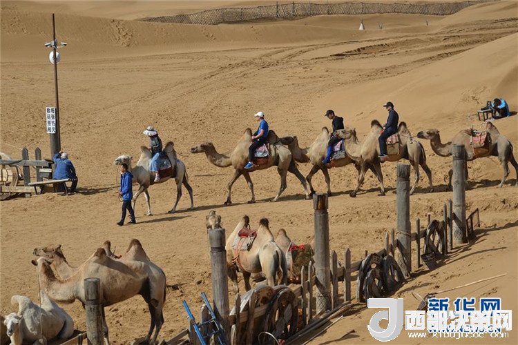 7月21日,在內(nèi)蒙古庫(kù)布其沙漠響沙灣景區(qū),游客體驗(yàn)騎駱駝。新華社記者 鄒予 攝
