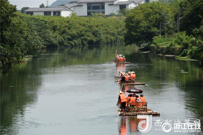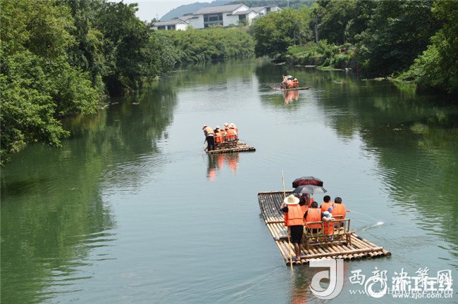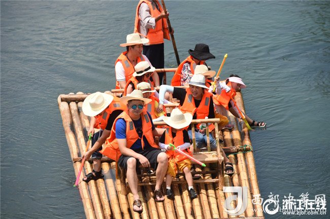 8月9日,杭州持續(xù)高溫,最高氣溫達(dá)36℃,酷熱難熬,在余杭雙溪漂流景區(qū),游客人數(shù)驟增,他們乘竹筏享受水上清涼。(浙江在線記者 吳元峰 攝)