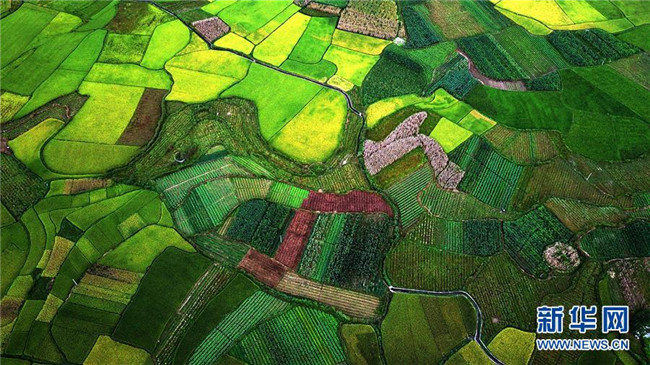 廣西隆林各族自治縣克長鄉(xiāng)田園景色(9月1日無人機拍攝)。