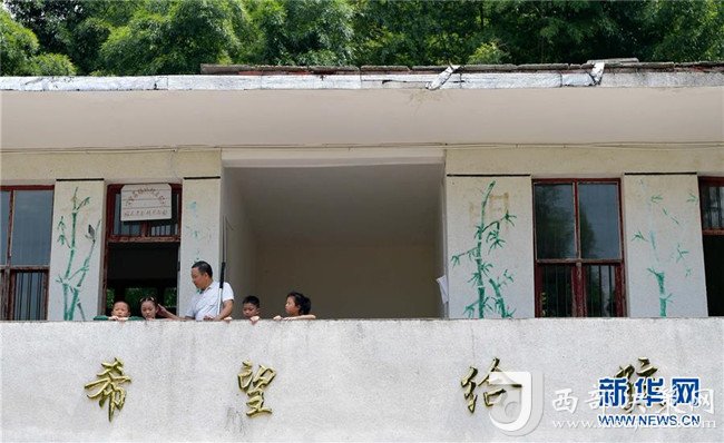 高自仁在教室外與孩子們聊天(9月3日攝)。新華社記者 彭昭之攝