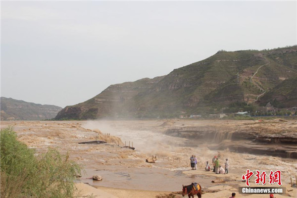 近日,黃河壺口瀑布水量大增,湍急的水流攜帶大量的泥沙奔涌而下,主瀑布幾乎沒(méi)有落差,出現(xiàn)“水岸齊平”的景象。 阿琳娜 攝