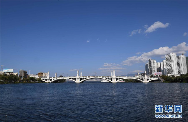 11月8日拍攝的大理洱海興盛大橋。 初冬時節(jié),云南大理洱海湖水清澈,景色秀麗迷人。 新華社記者楊宗友攝