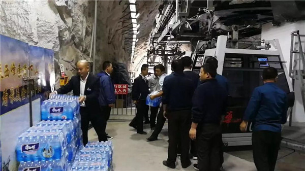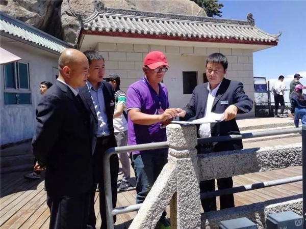 其實(shí),雷科峰平時(shí)對(duì)大家要求挺嚴(yán)的,職工背后議論說雷科峰有一種軍人作風(fēng),凌厲、硬氣,大家跟上他干事活多還辛苦。印象最深的是那一次美化南天門“三間房一頁瓦”附近的臺(tái)地??油莶黄降呐_(tái)地上原來蒙著一堆土,晴天一層灰,雨天滿地泥,冬天雪泥一凍一消,平臺(tái)就成了沼澤,不說過來過去行走不便,看起來也讓人不舒服,游客常常一不小心就濺得滿身的泥水,很掃興,雷科峰下決心美化平臺(tái)。美化平臺(tái)所用的沙子、石子、水泥要到二三里路遠(yuǎn)的溝底去背。從山頂?shù)綔系?,一路上全是立坡陡崖,雷科峰領(lǐng)著十幾名職工利用六天的工余時(shí)間,硬是把近二十噸的沙石背了上來。背料過程中,有的職工肩膀磨破了,有的雙腿像篩糠一樣抖個(gè)不停,許多職工中途不敢蹴下來休息,怕一蹴下就再也站不起來了,歇息時(shí)把沙袋子擱在路邊的石坎上,人站著緩口氣……一個(gè)個(gè)汗流浹背,氣喘吁吁。