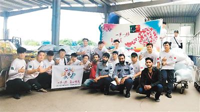 2018年5月,“一帶一路愛心傳遞”2018公益活動暨孤兒院捐贈活動在伊斯蘭堡啟動。當?shù)貧鉁爻8哌_40攝氏度,每一份捐贈物資又都包含有大米、面、油、豆子和白糖。中國公益志愿者都自己動手進行搬運分發(fā)。