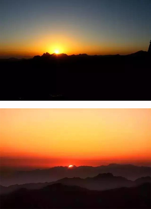 ??!青春的烈焰在升騰;新的生靈在震撼;歲月的車(chē)輪滾滾向前……該存在的難消失,該消失的存在難!天和地分了家,光明戰(zhàn)勝了黑暗。黑白交替,陰陽(yáng)輪換!宇宙徹悟,氣象萬(wàn)千。野草滾露,空氣新鮮;松濤簸香,山花爛漫;潮涌般的游客個(gè)個(gè)舒坦,猶如飽乳的嬰兒笑得甜甜。零晨三點(diǎn),漆黑一團(tuán)。熙熙攘攘的游客擁向山路彎彎,歡聲笑語(yǔ)、呼喚吶喊、手電筒的光柱密密麻麻。萬(wàn)萬(wàn)千千織成縷縷金練,宛如“金龍盤(pán)山”!朝陽(yáng)峰上熱鬧非凡。不是拜佛求仙,卻耐心等待!企盼一個(gè)輝煌時(shí)刻,猶如新生命噴紅分娩。一飽華山日出的壯觀!