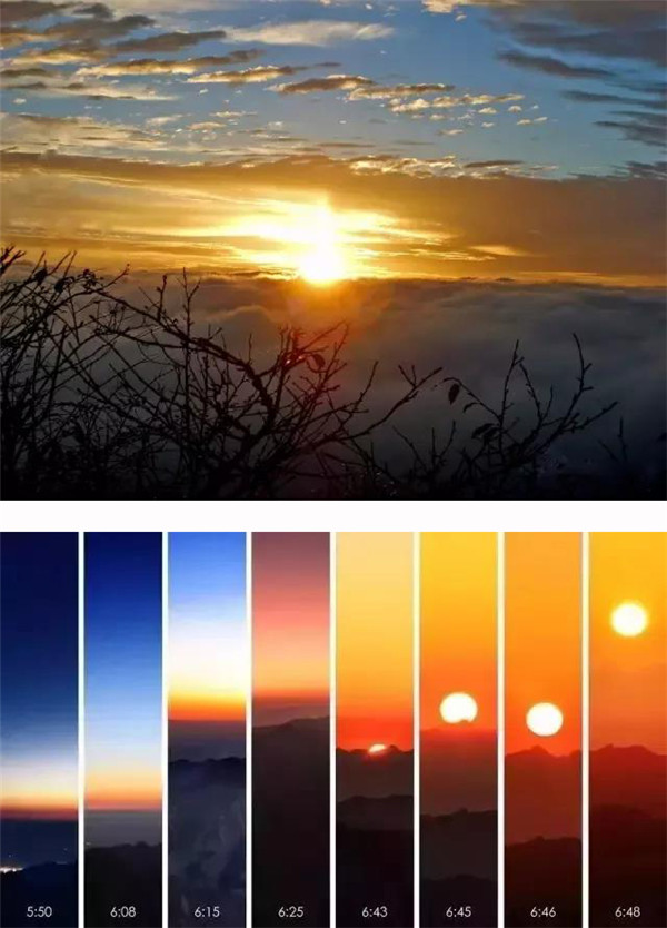該存在的難消失,該消失的存在難!天和地分了家,光明戰(zhàn)勝了黑暗。黑白交替,陰陽(yáng)輪換!宇宙徹悟,氣象萬(wàn)千。野草滾露,空氣新鮮;松濤簸香,山花爛漫;潮涌般的游客個(gè)個(gè)舒坦,猶如飽乳的嬰兒笑得甜甜。(郭均和)