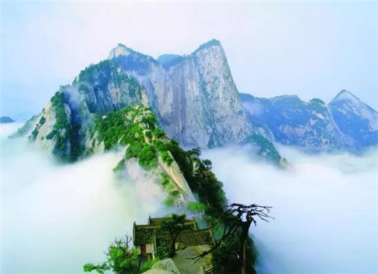 太華之山,削成而四方,其高五千仞,其廣十里。近看懸崖峭壁,奇險無比;遠(yuǎn)望石峰林立,氣象森羅。山上的自然景觀世所罕見。