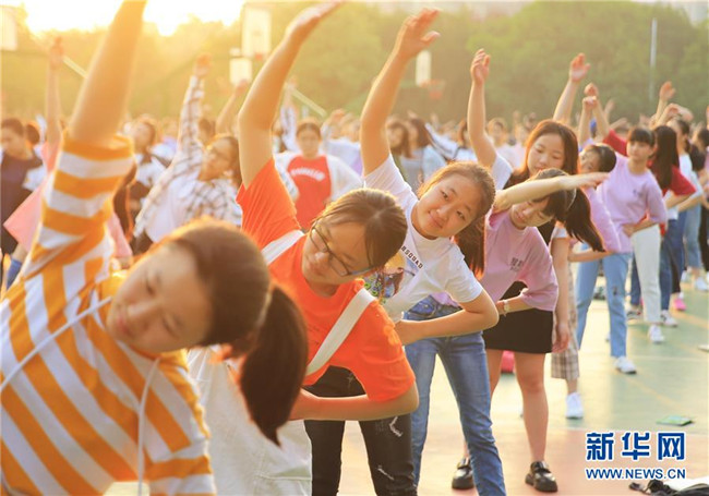 6月4日,在湖南省衡陽(yáng)縣第一中學(xué),高三學(xué)生做早操。 新華社發(fā)(曹正平攝)