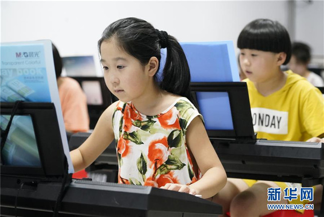 7月30日,學生在河北省涉縣青少年活動中心學習電子琴。