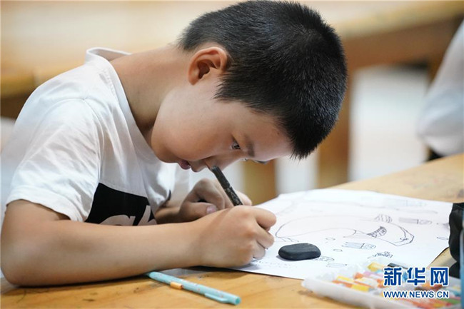 7月30日,學生在河北省涉縣青少年活動中心畫畫。