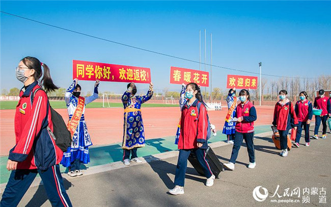 設置測溫消毒通道、實行錯峰分餐制、增設臨時隔點……4月26日,內蒙古呼和浩特市玉泉區(qū)教育局多措并舉織密疫情防控安全網的前提下,高一、高二年級,初一、初二年級有序返校復學。這是該區(qū)第二批次學校開學,高三、初三年級已于3月30日復課。(丁根厚 攝)