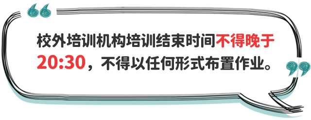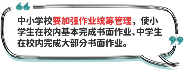 四、防止學(xué)業(yè)過重擠占睡眠時間。中小學(xué)校要提升課堂教學(xué)實(shí)效,加強(qiáng)作業(yè)統(tǒng)籌管理,嚴(yán)格按照有關(guān)規(guī)定要求,合理調(diào)控學(xué)生書面作業(yè)總量,指導(dǎo)學(xué)生充分利用自習(xí)課或課后服務(wù)時間,使小學(xué)生在校內(nèi)基本完成書面作業(yè)、中學(xué)生在校內(nèi)完成大部分書面作業(yè),避免學(xué)生回家后作業(yè)時間過長,擠占正常睡眠時間。校外培訓(xùn)機(jī)構(gòu)培訓(xùn)結(jié)束時間不得晚于20:30,不得以課前預(yù)習(xí)、課后鞏固、作業(yè)練習(xí)、微信群打卡等任何形式布置作業(yè)。