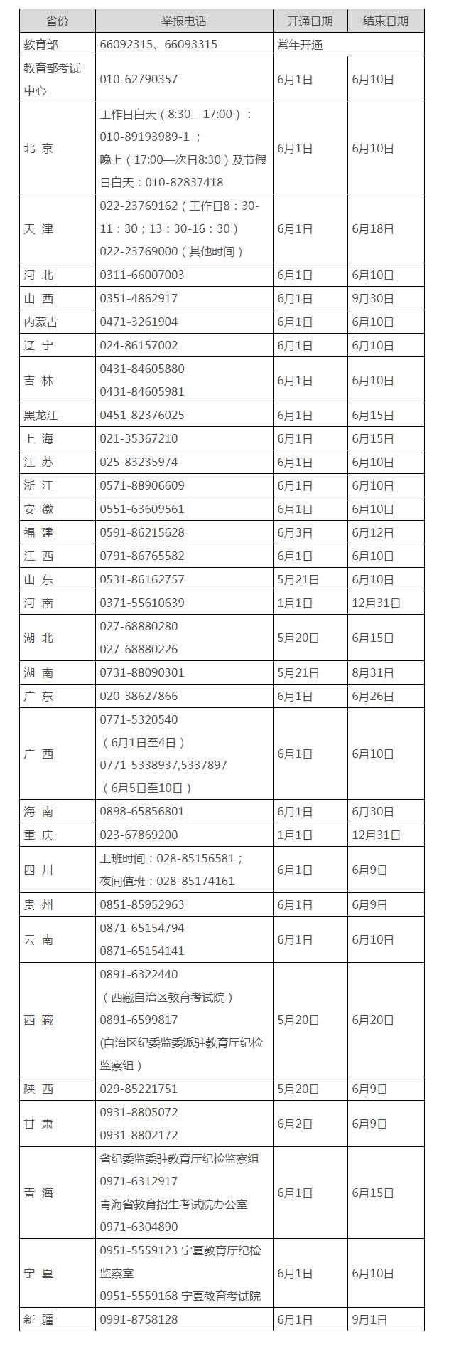 近日,教育部統(tǒng)一公布了教育部以及全國31個(gè)?。▍^(qū)、市)教育行政部門和招生考試機(jī)構(gòu)2021年的高考舉報(bào)電話,歡迎廣大考生、家長(zhǎng)及社會(huì)各界人士及時(shí)舉報(bào)反映涉及2021年高考的問題線索。教育部及各?。▍^(qū)、市)將會(huì)同有關(guān)部門根據(jù)舉報(bào)線索第一時(shí)間核查處理,堅(jiān)決維護(hù)高考公平公正。