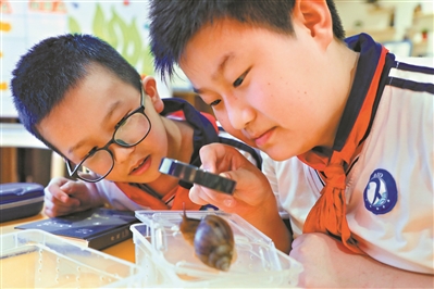 濱江東路小學(xué)學(xué)生在海珠濕地上勞動教育實驗課《常見的螺》。 廣州日報全媒體記者駱昌威攝