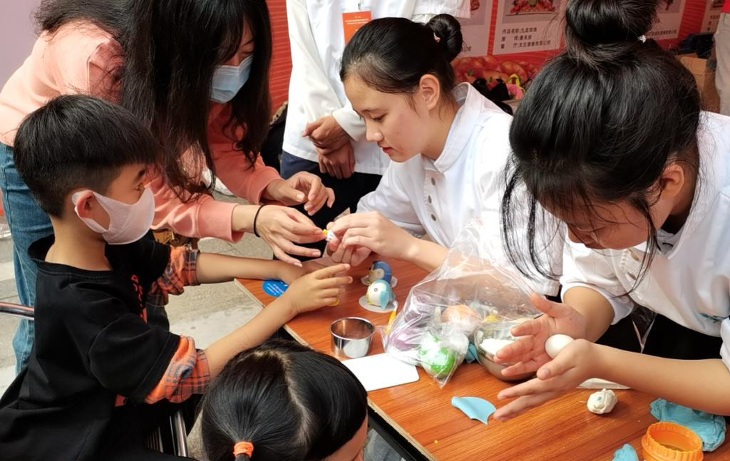 2021年3月20日,當(dāng)天開幕的粵菜師傅工程中山美食文化周上,技校學(xué)生正在現(xiàn)場展示粵式點心的制作技藝。 新華社記者魏蒙攝
