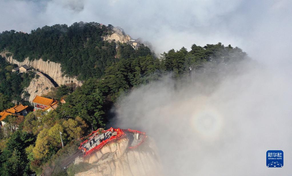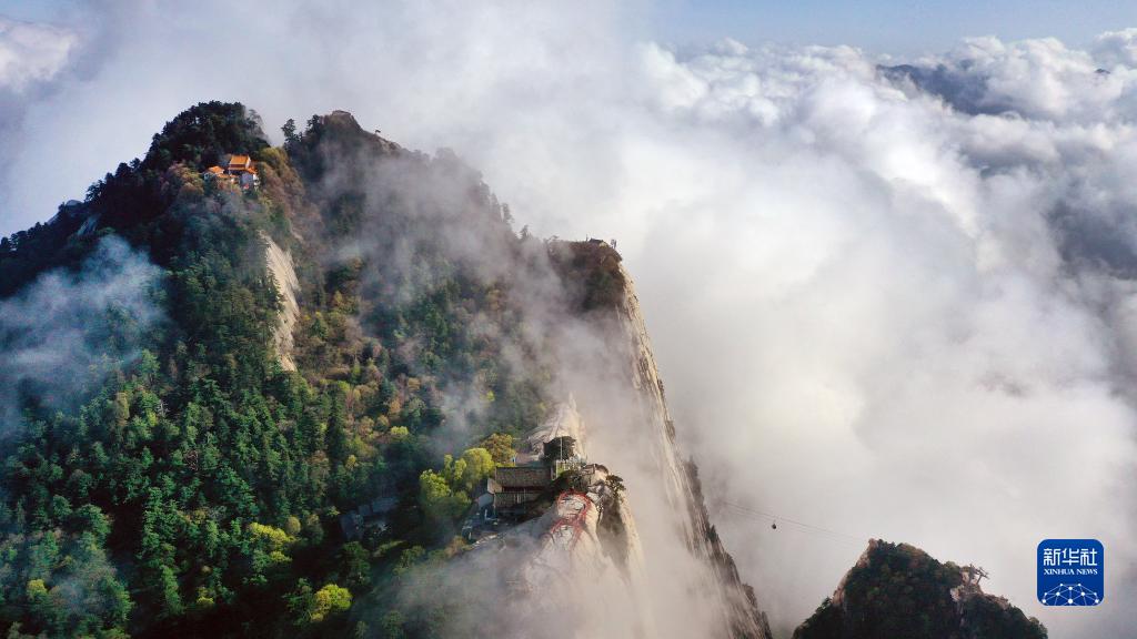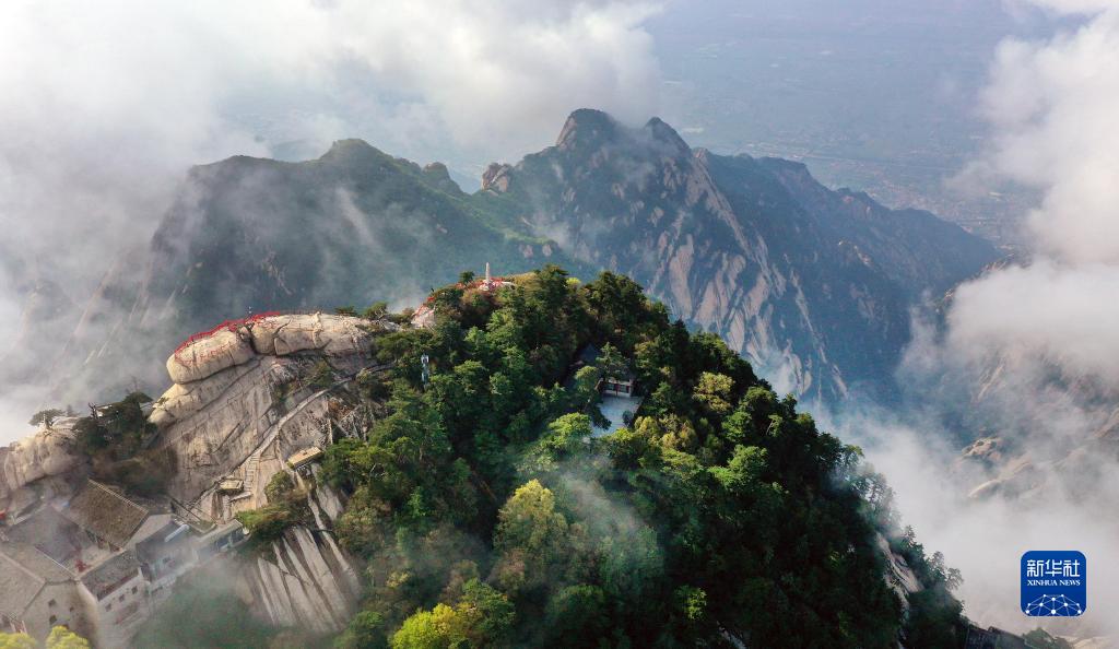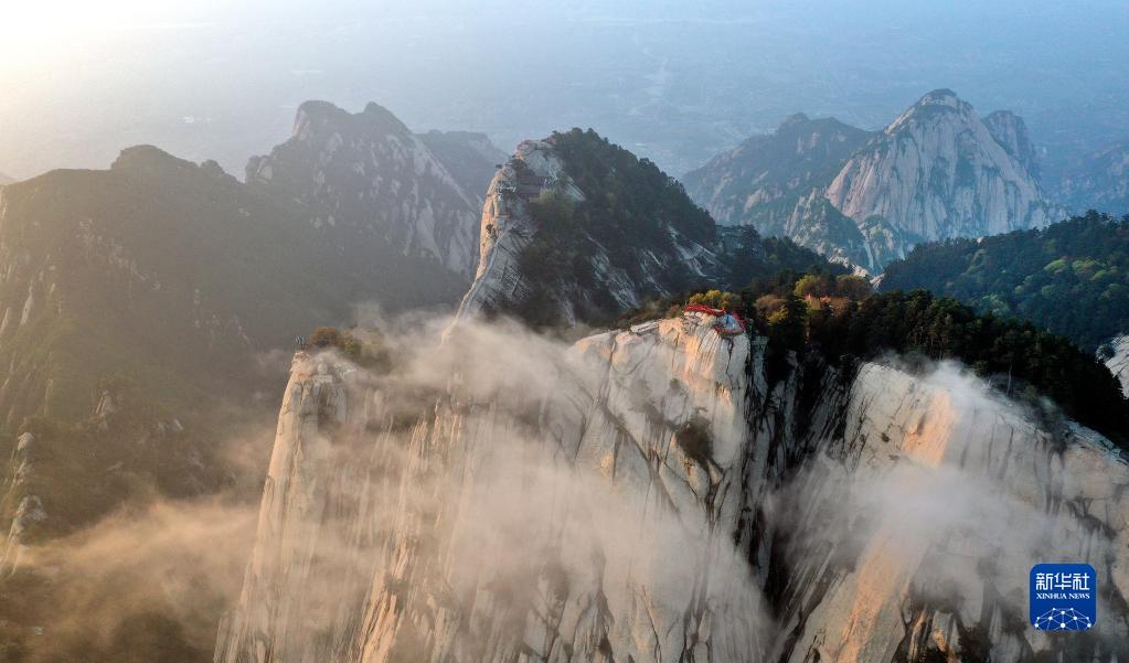云霧中的華山(4月28日攝,無人機照片)。新華社記者陶明攝