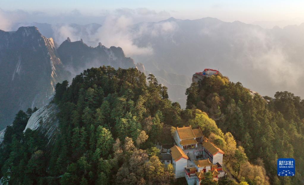 夕陽下的華山(4月28日攝,無人機照片)。新華社記者陶明攝