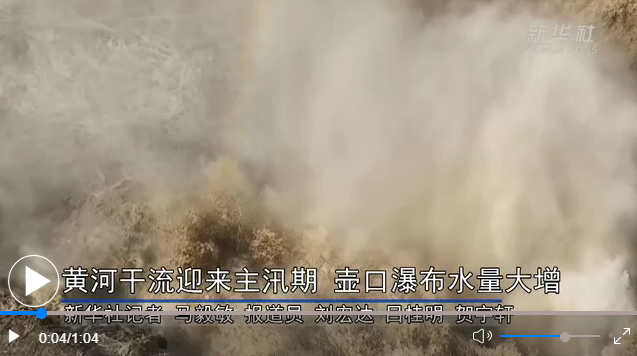 受近期上游降雨增多和萬(wàn)家寨水庫(kù)調(diào)節(jié)放水影響,黃河干流進(jìn)入主汛期,位于晉陜兩省交界的黃河壺口瀑布水量大增。