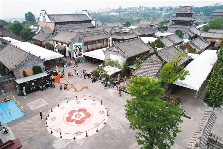 近日,游客在白鹿原影視城內(nèi)游覽(無人機照片)。
