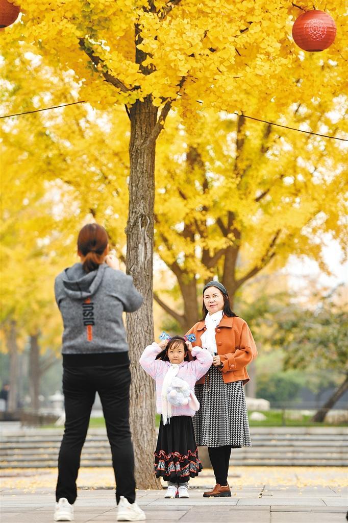 公園里、道路旁、古塔前……滿城盡帶“黃金甲”。遠觀猶如天際升起的一抹金色霞光,近看會發(fā)現(xiàn)葉片隨風(fēng)搖曳,述說著自然的力量。銀杏葉簌簌飄落,為大地鋪上金黃色的地毯,溫暖治愈,它們最終也會化為土壤,用盡最后的生命來裝點這個季節(jié)。
