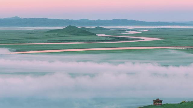 濕地河水充盈,草木豐美。時卷時舒的層云將陰影投在大自然鬼斧神工造就的草原上,成群的牛羊、鹿群以及盤旋高空的蒼鷹,還有珍稀動物