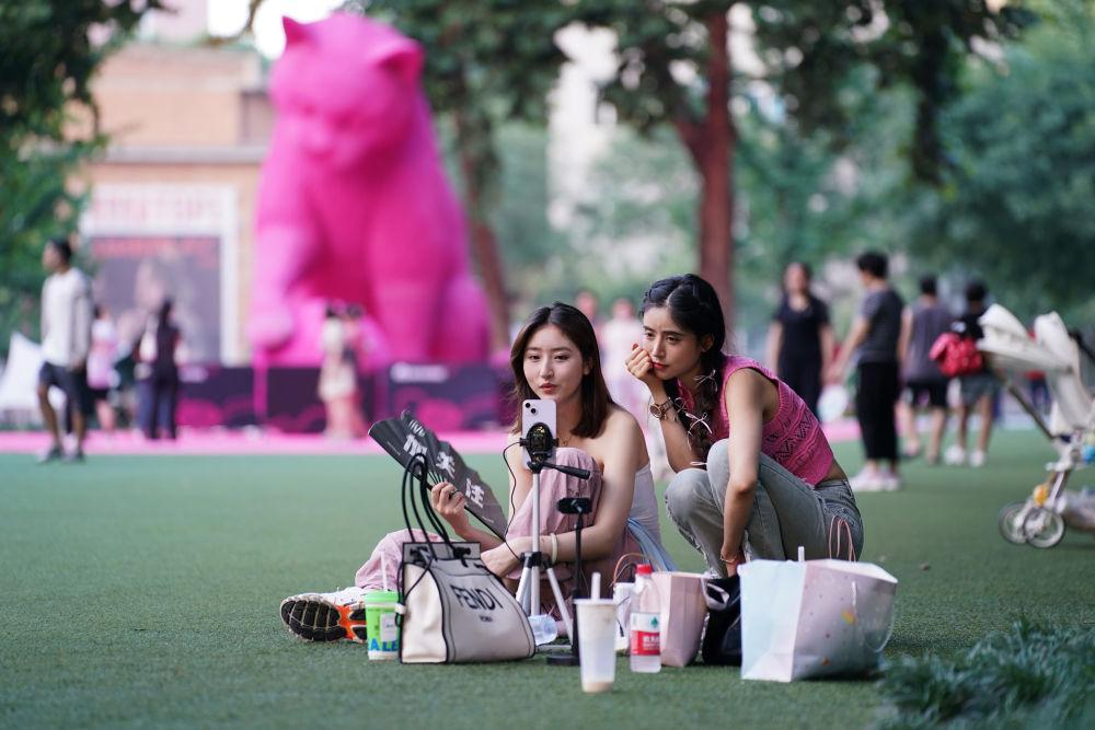 7月31日,兩名主播在位于西安市的西影電影圈子直播。新華社記者 邵瑞 攝