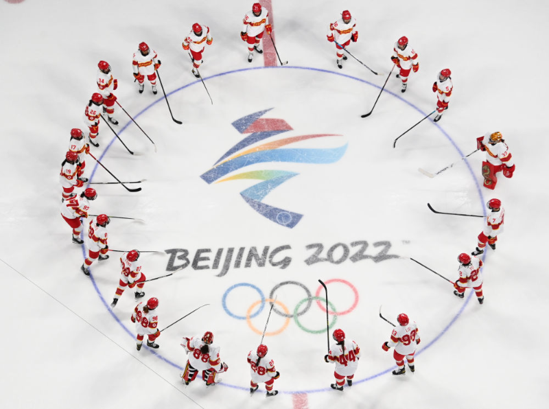 △北京2022年冬奧會是迄今女性參賽比例最高、參與項目最多的一屆冬奧會。圖為中國國家女子冰球隊在賽場。