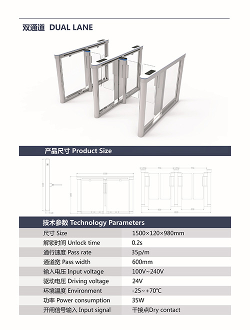 1.速通門B307系統(tǒng)具備防撞功能,當(dāng)有外物在未授權(quán)的狀態(tài)下撞擊擺桿,擺桿運(yùn)動(dòng)角度達(dá)到菜單設(shè)定的值(如 2°),控制器_會(huì)啟動(dòng)剎車機(jī)構(gòu),阻止擺桿運(yùn)動(dòng),并啟動(dòng)聲光報(bào)警。當(dāng)外力進(jìn)一步增大,剎車控制器會(huì)保護(hù)擺桿不被撞斷,外力撤除后,擺桿自動(dòng)歸位,系統(tǒng)正常; 2.速通門B307統(tǒng)具備角度分辨和零位自檢功能,包含 500P/R 編碼器,分辨精度高,這種高精度的傳感器的優(yōu)勢(shì)是使擺桿轉(zhuǎn)動(dòng)_; 3.非法進(jìn)入有報(bào)警提示功能; 4.防沖功能,在沒有接收功能開閘信號(hào),擺臂自動(dòng)鎖死; 5.紅外防夾功能,在擺臂復(fù)位的過(guò)程中紅外檢測(cè)到人在通道中,擺臂會(huì)自動(dòng)回到打開狀態(tài); 6.統(tǒng)一標(biāo)準(zhǔn)的對(duì)外電氣接口,可與多種讀卡器相掛接,并可通過(guò)管理計(jì)算機(jī)實(shí)現(xiàn)遠(yuǎn)程控制與管理; 7.速通門B307系統(tǒng)設(shè)有過(guò)流保護(hù)裝置,當(dāng)負(fù)載_過(guò)某設(shè)定值(如 2._),系統(tǒng)停止工作,以免燒壞電機(jī)等設(shè)備;